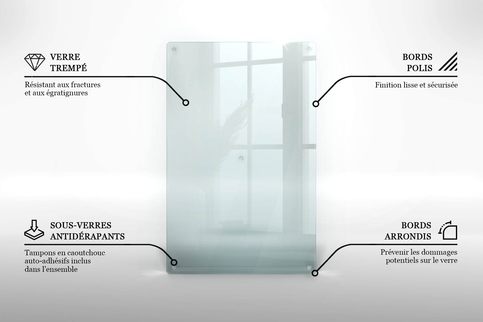 Matériau : acrylique coulé transparent (PMMA)
