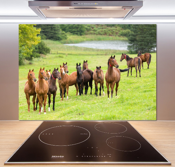 Panneau crédence cuisine Troupeau de chevaux dans un pré